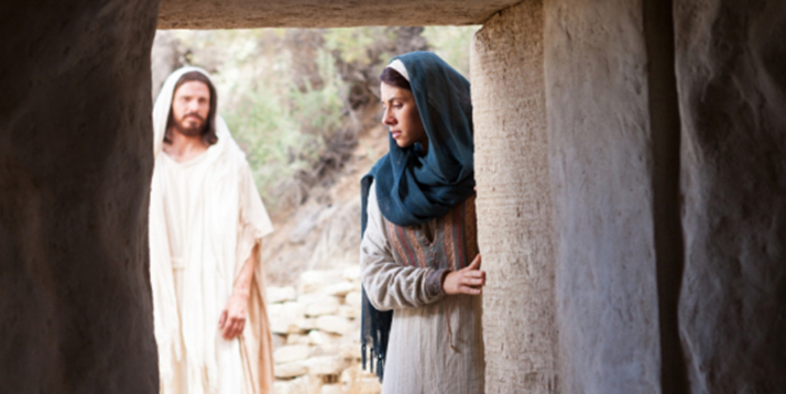 Isus joj postavlja gotovo isto pitanje kao i dvojici Ivanovih učenika koji su pošli za njim: “Što tražite?” (Iv 1,38). Samo upitna zamjenica “što” postaje “tko” odnosno “koga” kao objekt traženja. Ivanovi učenici žele znati gdje učitelj boravi, a Marija iz Magdale traži Isusovo mrtvo tijelo. Upravo su Isusa iz Nazareta tražili da ga ubiju. Isus, što je vrlo zanimljivo, izlazi u susret onima koji su ga došli uhvatiti. Pita koga traže, a kad se predstavi “Ja jesam” padaju na zemlju svi oni koji bi ga trebali uhvatiti (usp. Iv 18,4-5). Ovo Isusovo “Ja jesam” je samoobjava. On je Božji Sin. On je suvereni gospodar situacije. Autor četvrtog Evanđelja ističe Isusovu inicijativu: on je glavni lik događaja. Učitelj iz Nazareta je pri punoj svijesti onoga što dolazi. Svjesno dakle pristupa muci. Sam sebe predaje u ruke svojih progonitelja. Ovdje Isus, koji vodi glavnu riječ, oslobađa svoje učenike. Ivan tim naglašava da su Božji planovi glede učenika drukčiji nego što je Isusova sudbina. Njihova vjera još mora sazrjeti u obličju objave Isusove slave, mora biti izložena iskušenjima da bi oni kasnije donijeli obilati plod. Isus se obraća Mariji imenom. Tada ga i ona oslovljava kao učitelja, baš kako mu se obraćaju i prva dvojica učenika. Oni su ostali kod njega onaj dan. “Onaj dan” je prvi dan u tjednu, tj. dan Isusova uskrsnuća (usp. Iv 20,1.19).