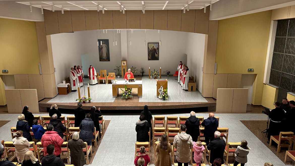 Svečano misno slavlje u 18 sati predslavio je pater Mato Anić, ravnatelj i glavni urednik Radio Marije u Bosni i Hercegovini, u koncelebraciji sa još osam svećenika franjevaca iz Sarajeva među kojima su bili: upravitelj svetišta fra Damir Pavić, provincijski vikar fra Janko Ćuro, gvardijan samostana Kovačići i definitor fra Vinko Sičaja, definitor fra Miro Relota, gvardijan samostana Bistrik fra Stipan Radić, ravnatelj HKO Kruh sv. Ante fra Petar Karajica, meštar bogoslova i glavni urednik Svjetla riječi fra Danijel Nikolić te duhovni asistent FRAME Bosne Srebrene fra Antonio Bakretarić. Na misnom slavlju okupilo se oko 60 ljudi iz raznih sarajevskih župa. Liturgijsko pjevanje animirali su franjevački bogoslovi.