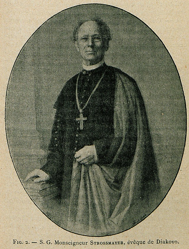 Zato je Strossmayer u hrvatskoj metropoli sagradio Akademijinu palaču u stilu firentinske renesanse, a njegovom donacijom 256 umjetničkih djela, od čega je 235 slika, u njoj je otvorena Galerija umjetnina. Govoreći na njezinu otvorenju 9. studenoga 1884., Biskup je još jednom zaželio da Zagreb svojim znanstvenim i kulturnim ustanovama postane središte Balkanskoga poluotoka koji je slijedom nepovoljnih povijesnih okolnosti zaostao za ostatkom kršćanske Europe. Osvrćući se na slike iz Bosne koje je također darovao ovoj ustanovi, ustvrdio je da one „dovoljno svjedoče, na kako visokom stepenu učenosti i razvijenosti stajala je naša posestrima Bosna u XV. vijeku, a koliki je udarac zadao joj grdni jaram turski”.