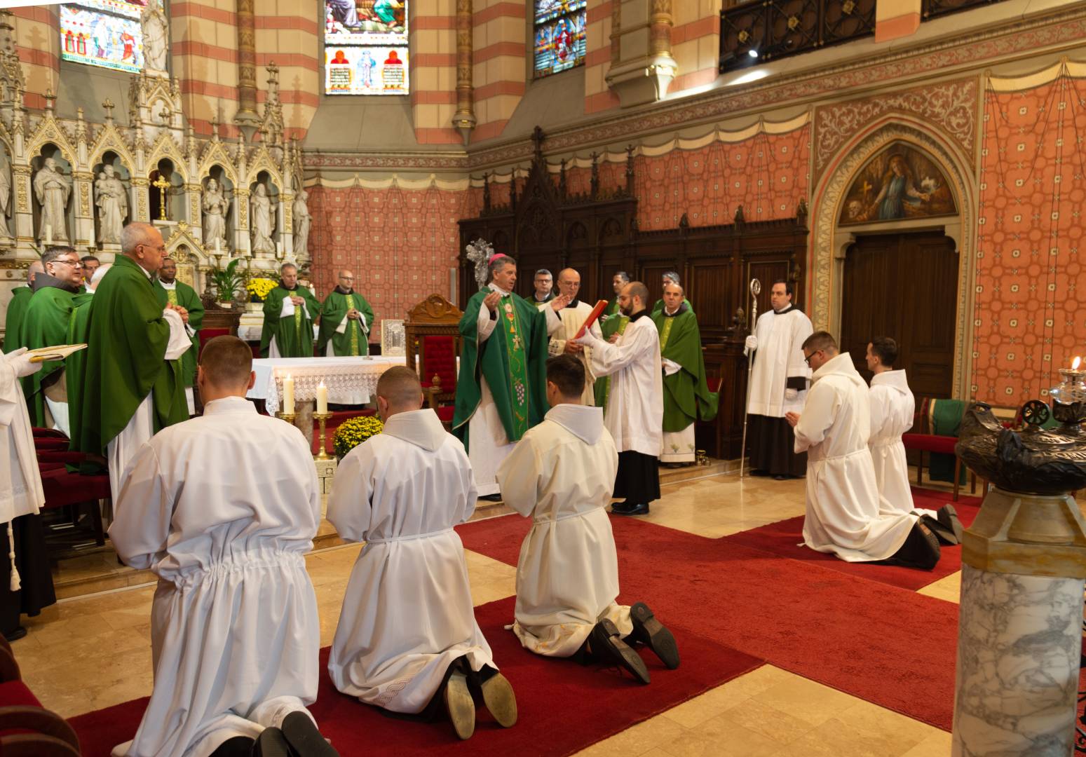 Na koncu homilije uslijedio je sam obred primanja reda đakonata u kojem su kandidati najprije izrazili svoju volju i kazali da su svjesni svih dužnosti koje podrazumijeva sveti red, a nakon litanija Svih svetih i posvetne molitve kandidati su uz pomoć svojih župnika obukli đakonsko odijelo, štolu i dalmatiku. Kao posljednji čin u ređenju primili su Evanđelje iz nadbiskupovih ruku.