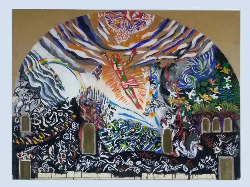 Ambiciozan projekt s Murtićem imali su hercegovački franjevci. Godine 1988. naručili su za crkvu sv. Petra i Pavla u Mostaru izradu mozaika, Kristovo uskrsnuće, na cijelom apsidalnom zidu crkve. Ideju je dao fra Radovan Petrović koji je već dulje vrijeme poznavao Murtića. Uskoro je sa slikarom postignut dogovor i, nakon uvida u nacrte, franjevci su se odlučili za izvedbu. Iza narudžbe stajala je ne samo uprava samostana u Mostaru nego i uprava Provincije kao i niz franjevaca entuzijasta. Murtić, za kojega je naručeni mozaik bio pravi izazov, započeo je intenzivno s radom i uskoro je posao privodio kraju. I kada je trebalo učiniti još jedan korak, uslijedio je šok: novoizabrana Uprava hercegovačke Provincije Uznesenja Marijina otkazala je projekt. Kakvi su mogli biti razlozi za otkaz kada je sve već bilo gotovo? Fra Vendelin Karačić, koji je zajedno s fra Jozom Pejićem, jedan od korifeja u stvaranju umjetničke oaze s bogatom galerijom u Širokom Brijegu, i utemeljitelj tamošnje Akademije likovnih umjetnosti (1996.), to precizno objašnjava: „Moćni pojedinci iz uprave Provincije htjeli su obezvrijediti i onemogućiti uspjeh svojih prethodnika koji su naručili mozaik… Mislim da su više inat i neka vrsta zavisti presudili, zbog čega je to djelo nekima postalo neprihvatljivo.” Kratko rečeno, nisu odlučili ni umjetnički ni religiozni razlozi nego autoritet vlasti i moći. Murtić je dovršio mozaik, koji je potom deponiran pri crkvi Gospe Lurdske u Zagrebu.
