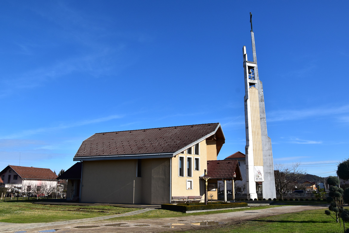 Po osnivanju župe franjevci su se odmah dali na izgradnju duhovne Crkve kao samostalne župne zajednice, ali i na materijalnu izgradnju župne kuće i crkve. Najprije je izgrađena župna kuća 1982. godine, u kojoj su se u improviziranom prostoru slavile mise dok je crkva bila u gradnji. Župna crkva izgrađena je 1983. godine po projektu O. Čauševića. Zidana je bijelom fasadnom opekom, a njezina veličina u tlocrtu bila je 20 x 28 m. Broj vjernika je rastao iz godine u godinu, a prema statistici iz 1991. godine župa je imala više od 2200 vjernika.