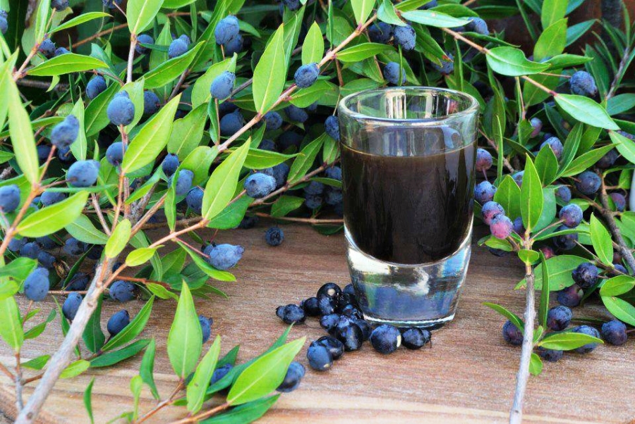 Vino od mirte. Rimski specijalitet myrtidanum, vino od bobica mirte, proizvodi se u Italiji. Na Sardiniji prave čak dva likera od mirte – od crvenih bobica se radi Mirto Rosso, a od svijetlih Mirto Bianco koji svojim mirisom i više podsjeća na mirtu. Priprema je vrlo jednostavna, u dobro bijelo vino doda se šaka suhih bobica mirte, zatvori se i ostavi 4 tjedna da odstoji. Nakon toga se procijedi, dobro se boca zatvori i čuva na tamnom i hladnom mjestu. Ovo vino je vrlo ukusno, korisno i ljekovito.