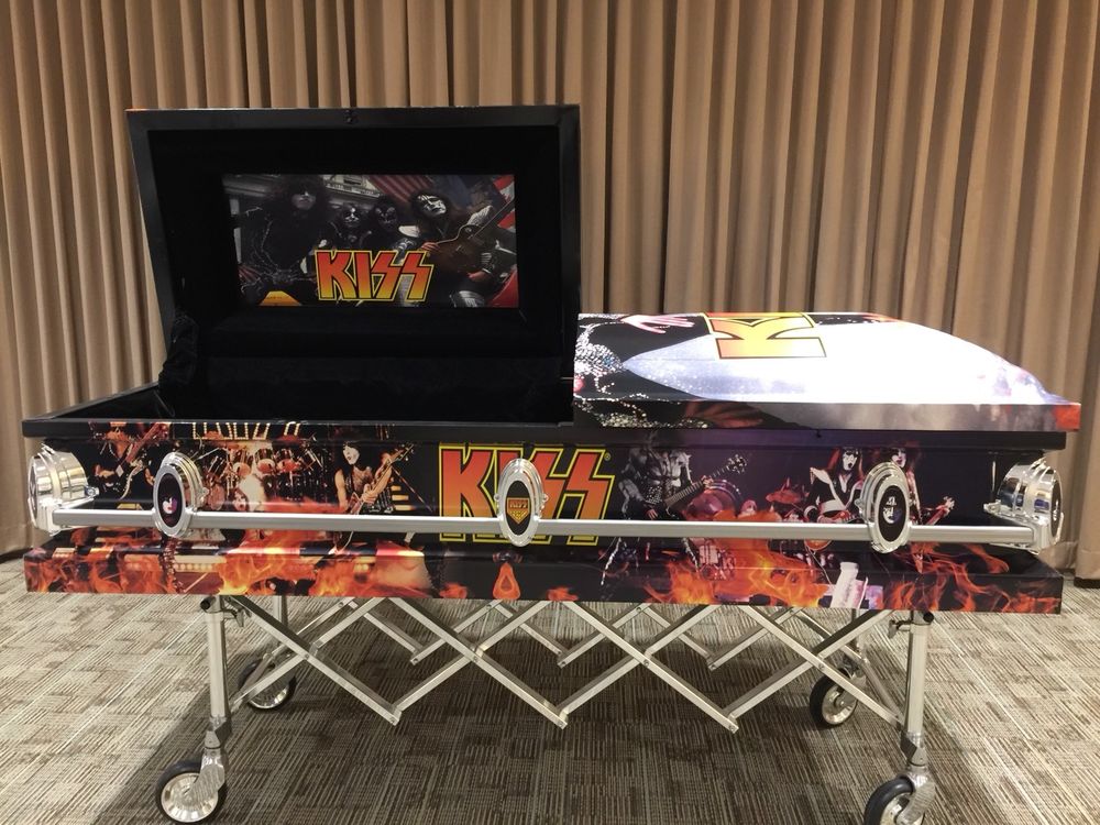 Američki rock sastav KISS nije htio biti samo poznat kao Beatlesi, nego i mnogo poznatiji. Svoje obožavatelje nazvali su Vojska KISS-a, a prepoznatljiva slova S u obliku groma objavljivali su na svemu i svačemu – od kutija za užinu do hladnjaka za pivo – i to u vrijeme kad je većina glazbenih skupina mogla samo sanjati da netko nosi majicu s njihovim logom. KISS je htio svoje najveće obožavatelje pratiti i nakon njihove smrti. Stoga su osmislili posebno ukrašen mrtvački sanduk koji košta oko 4,000 USD.