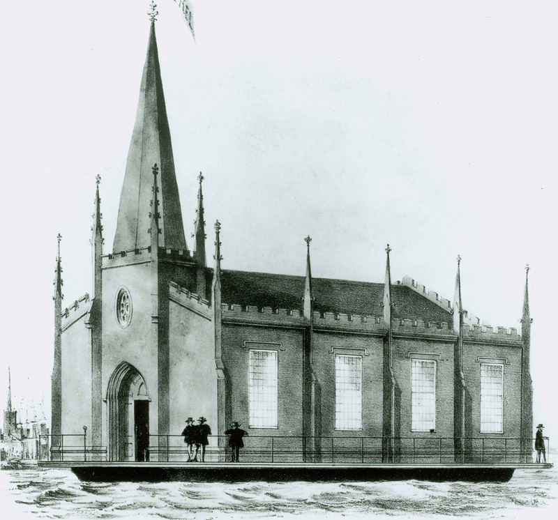 Crkva Našega Spasitelja bila je usidrena u luci Pike na donjem Manhattanu i ubrzo je postala simbol ovoga mjesta, ali je, nažalost, 1866. godine napuštena i uništena zbog lošega materijala od kojega je izgrađena.