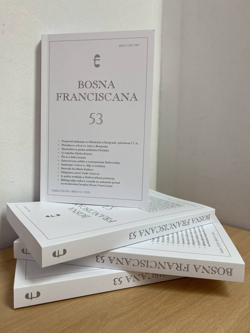 Nedavno je iz tiska izašao 53. broj časopisa Bosna Franciscana koji izdaje Franjevačka teologija u Sarajevu, a čiji je glavni urednik prof. dr. fra Marko Karamatić. I ovoga puta časopis obiluje zanimljivim, aktualnim, korisnim i detaljno obrađenim temama kao što su sljedeće: Preporod ahdname iz Milodraža u Beogradu početkom 17. stoljeća; Plečnikova crkva sv. Ante u Beogradu; Markušićeva pisma arhitektu Plečniku; potom prilog objavljen uz prigodu izložbe Zlatka Kesera. Među obrađenim temama je i ona posvećena životu u doba korone, te prilog o zdravstvenoj zaštiti u renesansnom Dubrovniku. U novome časopisu čitajte o samostanu i crkvi sv. Ilije u Grebenu, te teme: Dnevnik fra Blaža Kuliera; obljetnica smrti Vlade Gotovca; Iz pučke tradicije u Dubrovačkom primorju, a objavljena je i Bibliografija radova vezanih uz osmanski period na stranicama časopisa Bosna Franciscana.