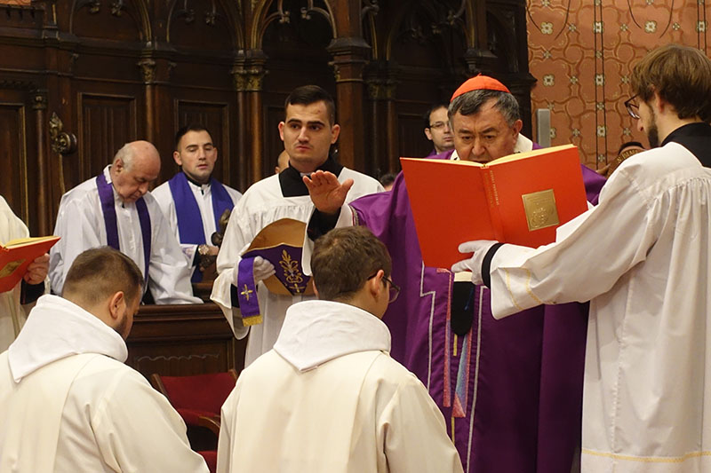 Pred vjerničkim pukom kandidati su nadbiskupu obećali da će živjeti u celibatu, moliti Časoslov te biti poslušni svomu biskupu i redovničkom poglavaru. Uslijedilo je pjevanje litanija svih svetih, tijekom kojeg su kandidati zauzeli stav najdubljeg klanjanja – ležeći u prostraciji. Nakon polaganja ruku i posvetne molitve, primili su red đakonata te pristupili služenju kod oltara tijekom euharistije.