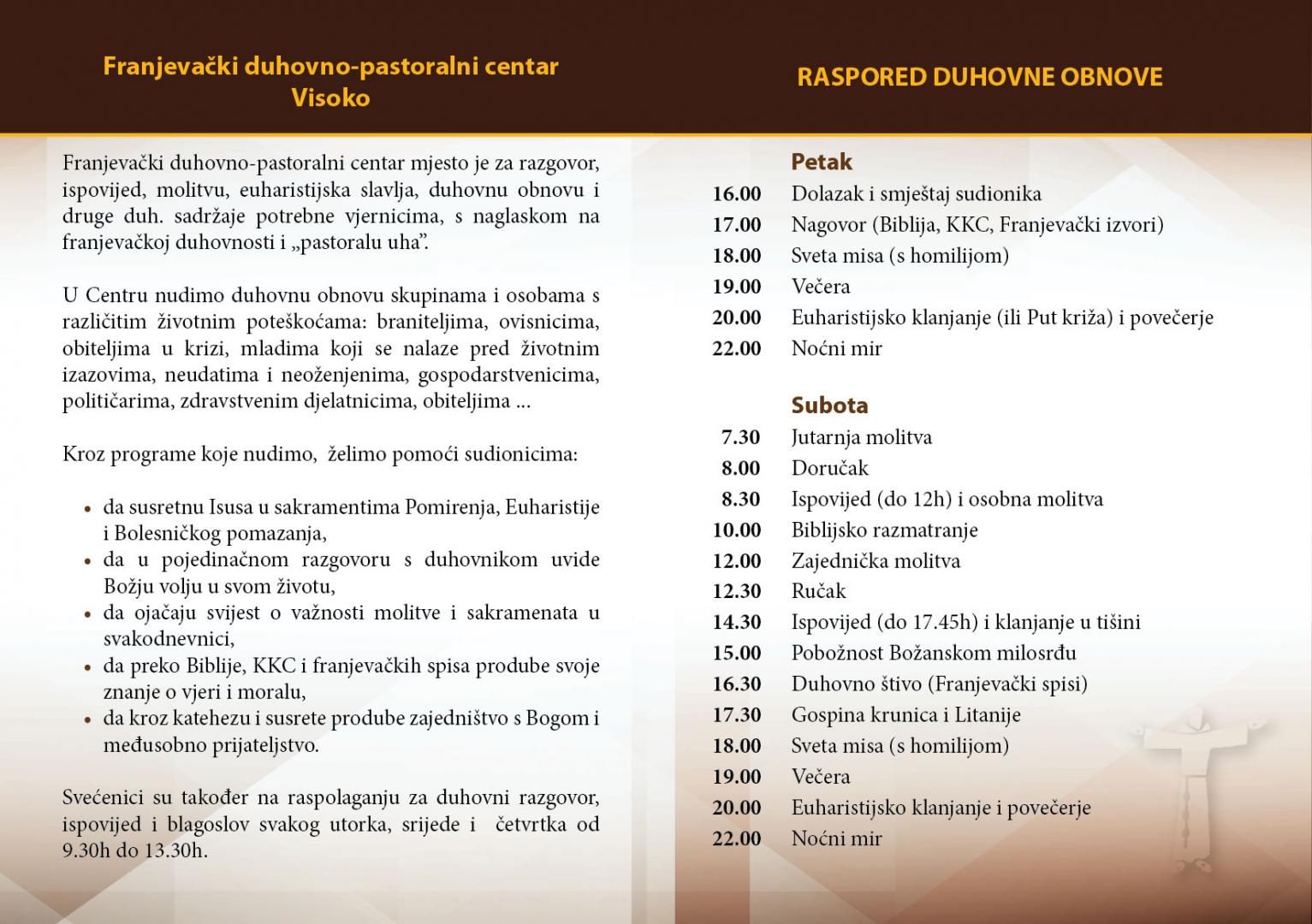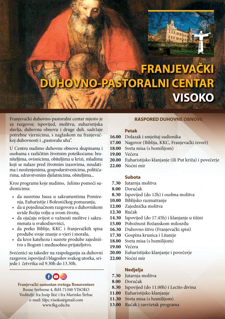 Bila je ovo ukupno 30. duhovna obnova održana u visočkom samostanu svetoga Bonaventure kroz posljednje tri godine za hodočasnike iz različitih krajeva BiH i Hrvatske. Vođeni potrebama vjernika u današnjem užurbanom svijetu, franjevci su se stoga i odlučili osnovati Duhovno-pastoralni centar koji će služiti za razgovor, ispovijed, molitvu, euharistijska slavlja, duhovnu obnovu i druge duhovne sadržaje potrebne vjernicima, s naglaskom na franjevačkoj duhovnosti i „pastoralu uha”.