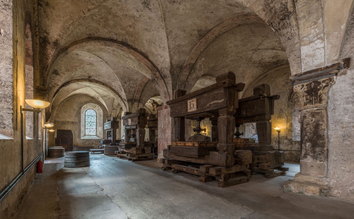 Upravljanje zemljištem i vinogradima, odnosno proizvodnja vina nastavljena je i u državnim rukama sve do danas. Vinogradi samostana Eberbach bili su na 300 hektara i najveći u srednjovjekovnoj Europi. Tada se uređuje i prostor s velikim prešama za grožđe koje su tu još i danas. Sve preše su napravljene od hrastova drveta i još i danas mogu biti u funkciji, a plijene svojom veličinom, dok svaka preša ima ugraviranu godinu kada je proizvedena. Tu je i poznati vinski podrum s arhivom starih vina, kao i s brojnim bačvama u kojima dozrijeva vino. Inače, vinogradi su danas većinom u vlasništvu države Hesse. Njima upravlja Hessische Staatsweingüter GmbH Kloster Eberbach, koja ujedno upravlja najvećim povezanim područjem proizvodnje vina u Njemačkoj. U to područje ulaze i vinogradi na obroncima doline rijeke Rajne kao i oni iz vinogorja Hessische Bergstrasse. Od današnjih 200 hektara koji su obrađeni, a nekoć su pripadali samostanu, tri četvrtine su zasađene rizlingom, ali uzgajaju se još chardonnay, bijeli, sivi i crni pinot te dornfelder.
