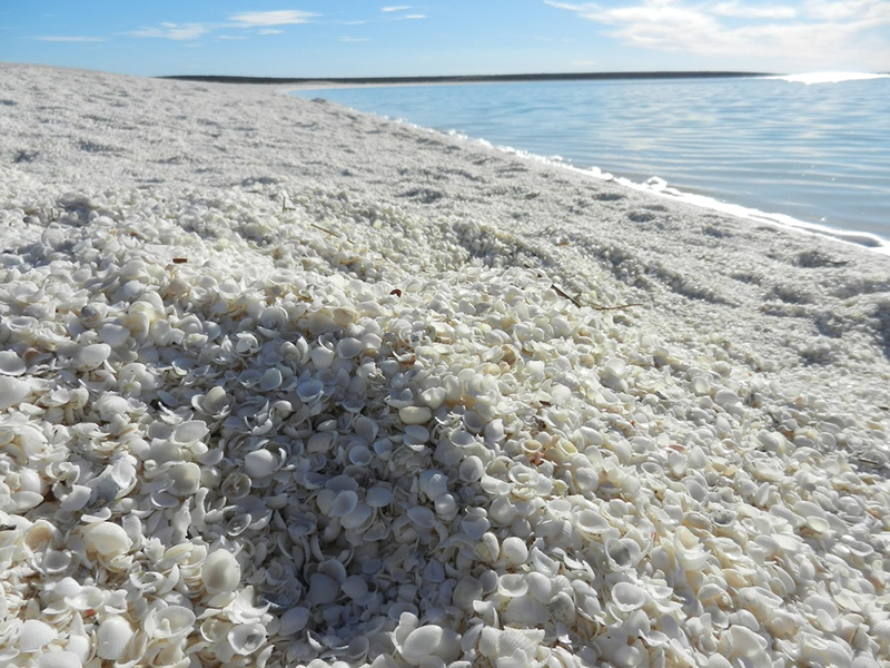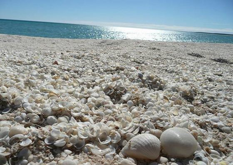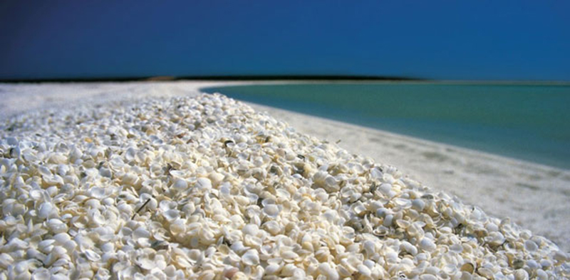 Dužina plaže iznosi oko 110 km te je jedna od dvije plaže u svijetu koje su u potpunosti prekrivene školjkama. Nekada su milijuni školjki korišteni kao materijal za izgradnju okolnih objekata dok nije postala dio UNESCO-ve Svjetske baštine, pažljivo zaštićena od bilo kakve štete.