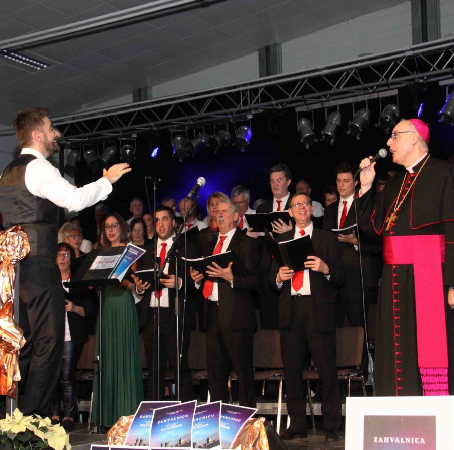 Programom su bile predviđene božićne i adventske pjesme Tiha noć, Narodi nam se, Zdravo budi, Marijo, Radujte se narodi, Sretan ti Božić, narode moj i druge te zabavne pjesme ljubavnoga i domoljubnoga karaktera Zemlja dide mog, Croatio iz duše te ljubim, Da te mogu pismom zvati, Željo moja i druge. Pred kraj koncerta voditelj zbora Pax et bonum Ivo Šeparović pozvao mjesnoga biskupa mons. Živkovića da se pridruži izvođačima, na što je ovaj prihvatio mikrofon i otpjevao pjesmu Pismo moja hrli tamo u pratnji pjevača. Za kraj su svi okupljeni otpjevali pjesmu Gloria. Nakon koncerta upriličen je domjenak i druženje za okupljene goste i izvođače.