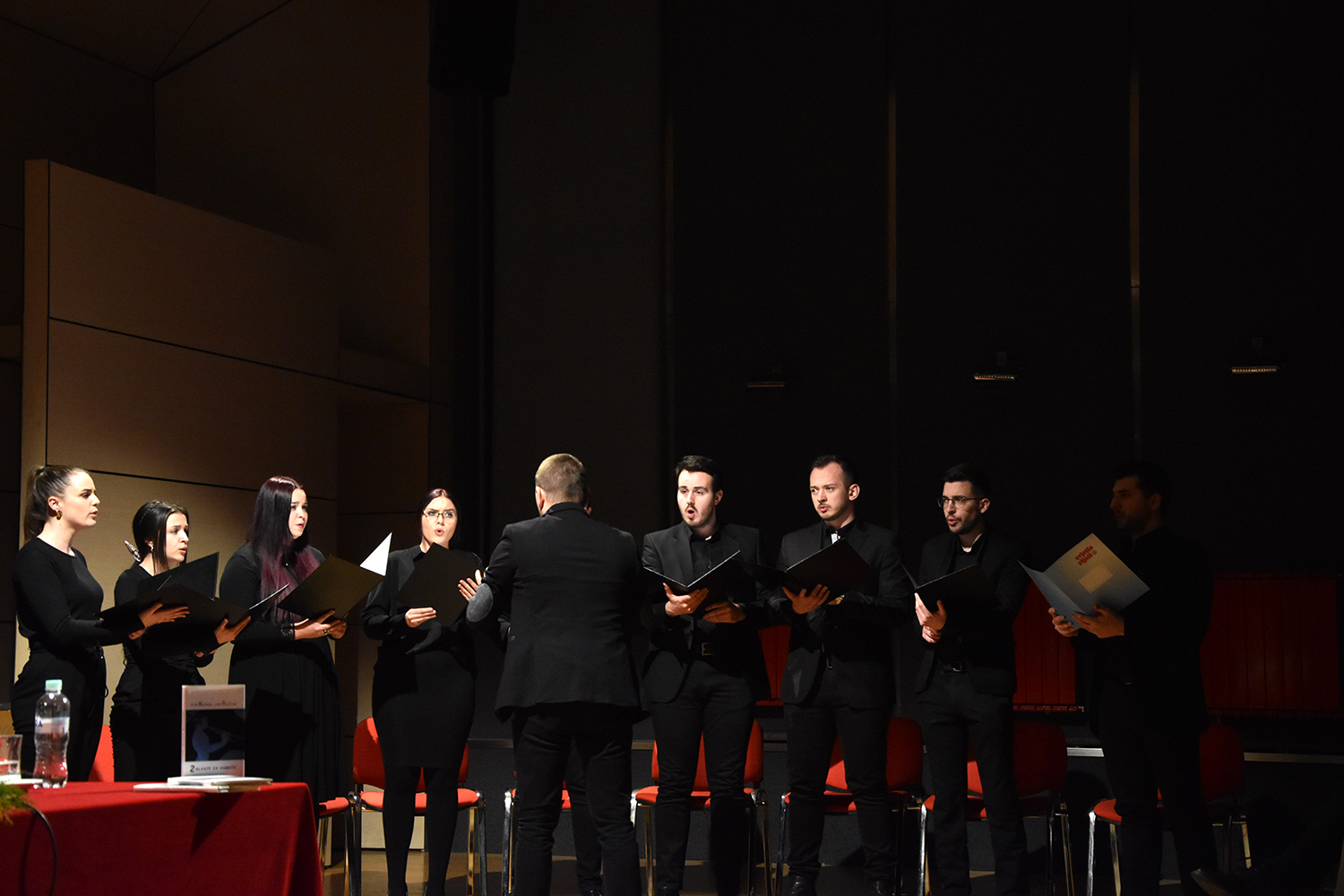 Program predstavljanja knjige Dvoglasje za samoću glazbeno su upotpunili oktet Magnificat pod ravnanjem maestra fra Emanuela Josića te sopranistica Hana Salihović uz klavirsku pratnju Zerine Šabotić.