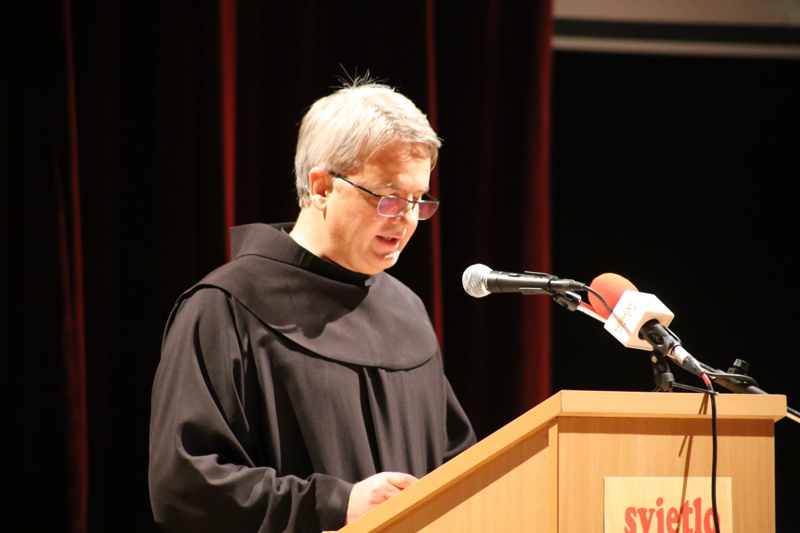 Potom je ravnatelj Franjevačkoga medijskog centra Svjetlo riječi fra Janko Ćuro kao domaćin izrekao nekoliko riječi. „Knjiga Kamenom satkana prošlost objedinjuje priloge koje je Valenta pisao u reviji Svjetlo riječi od 2004. do 2007. godine u rubrici Srednjovjekovni bosanski gradovi. Uopće se ne pretjeruje kad se konstatira da je svaki broj naše revije (441) jedna mala knjižica od 84 stranice u kojoj su pisali i pišu kompetentne suradnice i suradnici u proteklih 38 godina. Utemeljenost ove konstatacije potvrđuje i knjiga koju večeras predstavljamo, ali i sve naše druge knjige koje objedinjuju i uokviruju priloge naših mnogobrojnih suradnika. Svojim profesionalnim, autentičnim i kompetentnim sadržajem, ove knjige doprinose sveukupnom izučavanju i razumijevanju naše nacionalne, vjerske, kulturno-povijesne, društveno-političke i prirodno-zemljopisne tematike. S posebnom pažnjom i brigom uvijek prilazimo bosanskohercegovačkoj kulturno-povijesnoj baštini, jer je u svojoj kompleksnosti najranjivija pa se, kao takva, različito, često i kontradiktorno, tumači i predstavlja. A to najčešće, nažalost, rezultira međusobnim nepovjerenjem i razdorom”, poručio je fra Janko.