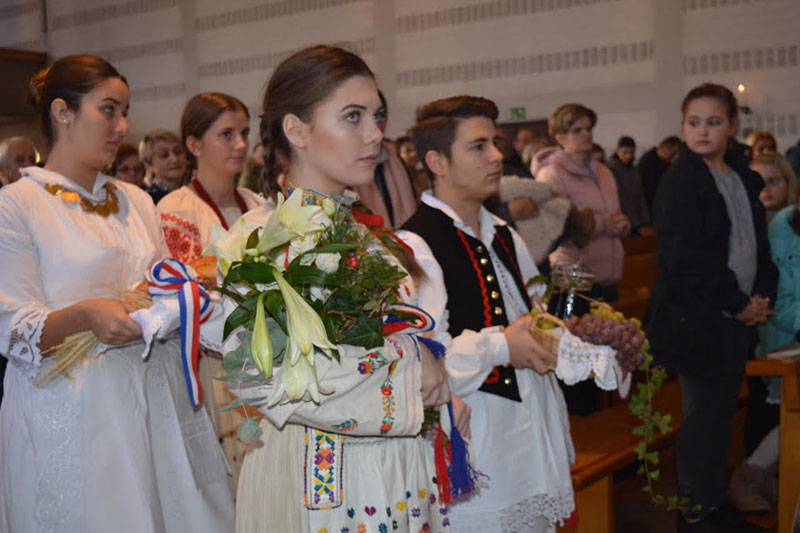 U prinosnim darovima mladi u narodnim nošnjama donijeli su sjemenje, voće i povrće, ulje, cvijeće, vino, kruh i Bibliju.