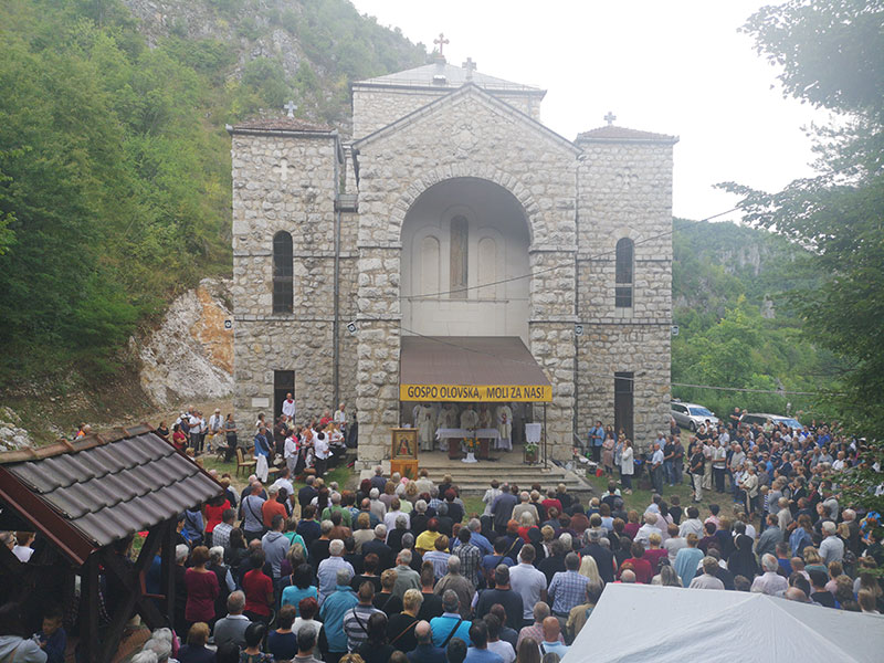 Svečano euharistijsko slavlje u 11 sati predvodio je dekan Franjevačke teologije u Sarajevu fra Danimir Pezer u koncelebraciji s čuvarem svetišta Gospe Olovske fra Ilijom Božićem te još nekoliko svećenika. U svojoj je homiliji fra Danimir istaknuo kako je Bog na poseban način prisutan na ovom mjestu gdje se njegovo ime već stoljećima zaziva. Prisutne hodočasnike je potaknuo da po primjeru Blažene Djevice Marije traže i susreću Boga u svakodnevnom životu. Objasnio je kako Crkva svaki dan moli Marijin hvalospjev u kojemu ona očituje svoju vjeru hvaleći Gospodina i stavljajući u te riječi dobro koje joj je Bog učinio. Te riječi Marijina hvalospjeva su istinite za sva vremena i sve ljude.