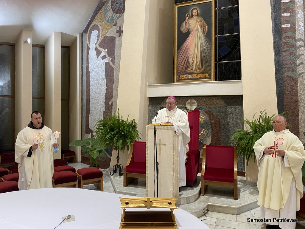 Po završetku predavanja upriličena je molitva časoslova, nakon čega je bila prigoda i za svetu ispovijed. U 18:00 sati u holu biskupije upriličen je blagoslov svijeća, a potom je služena sveta misa koju je predvodio biskup fra Marko Semren u koncelebraciji s gvardijanom samostana na Petrićevcu fra Domagojem Šimićem, samostanskim vikarom fra Tomislavom Svetinovićem, biskupijskim kancelarom don Perom Ivanom Grgićem, te tajnikom biskupa Komarice don Predragom Ivandićem.