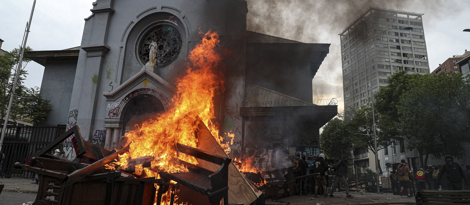U južnoameričkoj državi Čile već se duže vrijeme osjete društveni nemiri, dok se u ulicama glavnoga grada Santiaga održavaju prosvjedi. U prošli petak prosvjednici su ušli u crkvu Uznesenja Blažene Djevice Marije i otuđili drvene klupe, ispovjedaonice te slike i kipove svetaca, pa su, raskomadavši ih, načinili barikade na ulici ispred crkve.