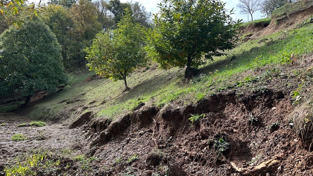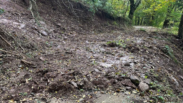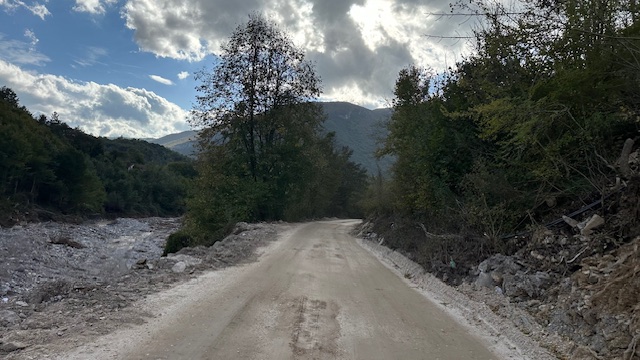 Obilazak je nastavljen dalje prema selu Ljesovinja kamo su fra Petar i fra Danijel, koji je inače porijeklom iz ovog sela, morali ići pješice 4 km uzbrdo jer je nekoliko odrona blokiralo put prema selu. Troje stanovnika sela Ljesovinja silno se obradovalo dolasku dvojice fratara jer su među prvima koji su uopće posjetili selo nakon poplava. Zahvaljujući župniku fra Ivici ubrzo je angažiran jedan bager koji je prokrčio put do ulaza u selo. Posljednji i najveći odron na ulazu u selo Ljesovinja trebat će angažman većih strojeva narednih dana. U selu, srećom, kuće nisu uništene, samo su neke bile malo poplavljene. Dodatne poteškoće izaziva to što u selu nema struje pa je nabavljen jedan agregat koji stanovnicima olakšava situaciju.