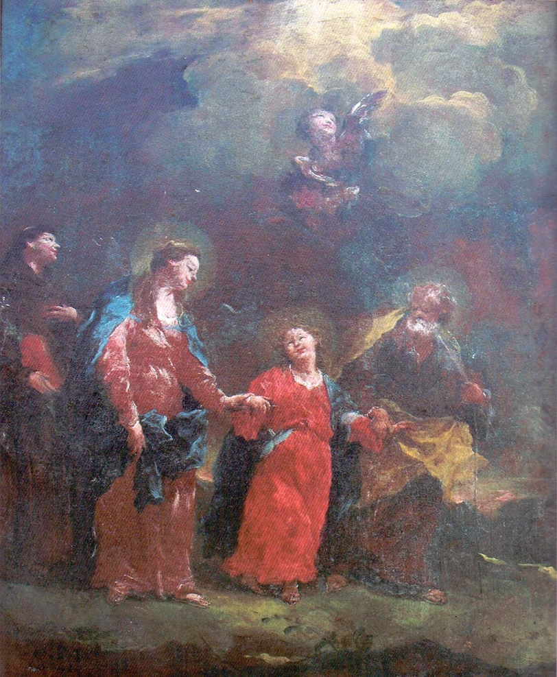 Gian Antonio Guardi (Venecija 1699. – 1760.), Povratak Sv. Obitelji iz Hrama i sv. Anto Padovanski, oko 1750., ulje na platnu, 40,1 x 32,7 cm, franjevački samostan Petrićevac (Banja Luka).