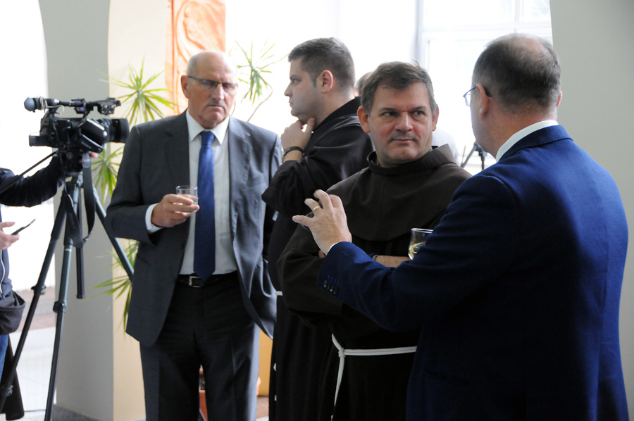 Službeni je program prijma započeo izvedbom glazbene točke franjevačkih bogoslova pod ravnanjem fra Emanuela Josića. Potom je moderator fra Janko Ćuro, ravnatelj Franjevačkoga medijskog centra Svjetlo riječi, goste pozdravio franjevački pozdravom mir i dobro, te nazočne uveo u događaj, spomenuvši kako toga dana franjevci Bosne Srebrene slave dan kad je urmo sveti Franjo Asiški, utemeljitelj Franjevačkoga reda: „Već 1291. godine franjevci s tim istim mirom i dobrom dolaze u Bosnu. I od tad do danas zajedno s njom prolaze već osam stoljeća sve njene mijene, puno uspona i padova, dobrih i loših godina za njenoga čovjeka a od kojega fratri nikad nisu mogli odustati bez obzira na cijenu. Jer im je čovjek neprocjenjiv i jer bi u tom slučaju odustali od samih sebe.”