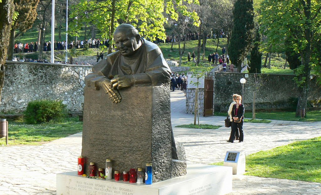 Želja je bila s ovim kipom prikazati lik svetog Ivana Pavla II. kao hodočasnika i dati mu doličnu posvetu nakon njegova pastirskoga pohoda Hrvatskoj 2003. godine. Bio je to posljednje ovozemaljsko putovanje ovog sveca u Lijepu našu, koje i danas odzvanja u srcima svih hrvatskih vjernika. Tko ne bi upamtio trenutak molitve današnjega sveca pred čudotvornom slikom Gospe Trsatske? Riječ je o dojmljivom kadru poljskoga pape, trajno uronjenoga u molitvu za bolju budućnost Katoličke Crkve.