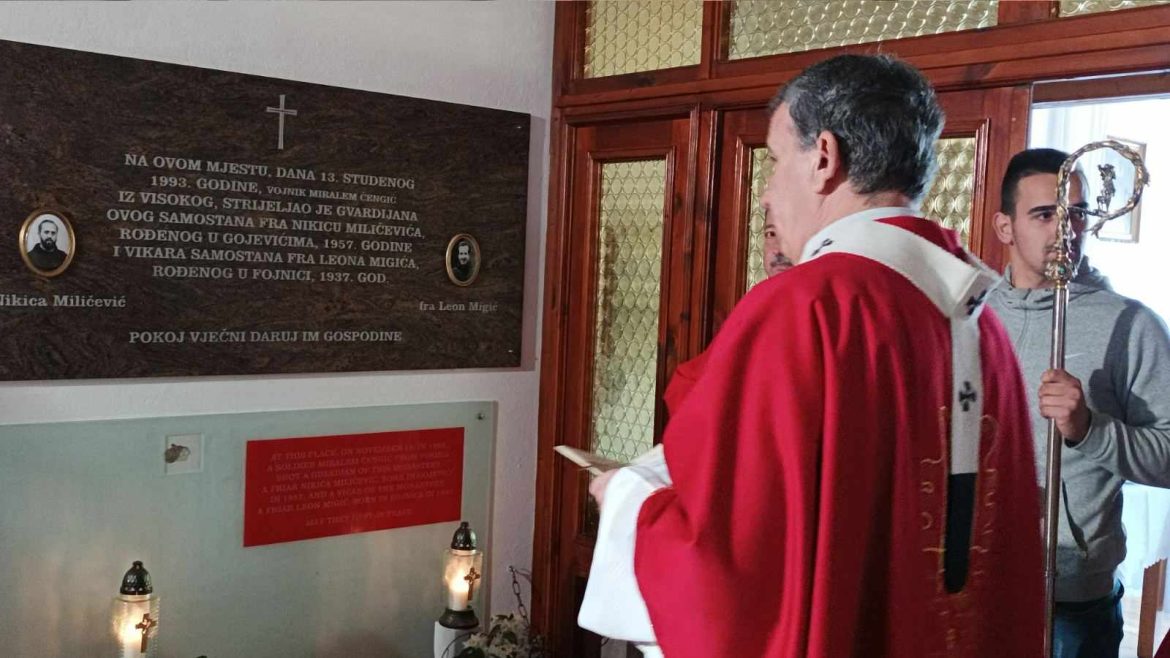 “Kao zajednica Isusovih vjernika, koja se moli milosrdnom Gospodinu i ponizno traži Božji blagoslov da bi mogla ustrajati na putu svjedočenja dobrote i ljubavi prema svim ljudima, ovim Euharistijskim slavljem u crkvi Duha Svetoga i pod njegovim vodstvom sjećamo se svoje pokojne braće fra Nikice i fra Leona, dvojice svjedoka kršćanske vjere, koji su u ovom samostanu ubijeni prije 30 godina. Dok molimo, zahvaljujemo dragom Bogu što ih je, osobito u ona tragična vremena, blagoslovio snagom povjerenja u Božju providnost, obiljem vjernosti i kršćanske hrabrosti da ustraju u vlastitom redovničkom i svećeničkom pozivu kao duhovni pastiri braće i sestara, kojima ih je Crkva poslala. Molimo i sa željom da ih dragi Bog nagradi vječnim životom. Da obojici otvori vrata raja riječima: „Valjaš, slugo dobri i vjerni! U malome si bio vjeran, nad mnogim ću te postaviti! Uđi u radost gospodara svoga!“ (Mt 25,21). Zahvaljujemo Božjoj providnosti također za odlomke iz Svetoga Pisma koje, kao misna čitanja predviđena za današnje Euharistijsko slavlje, daruje nama i svim ostalim katoličkim vjernicima kao podlogu i vodilju za razmatranje.