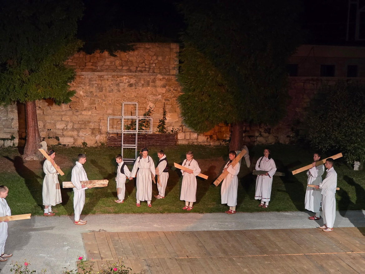 Predstava obrađuje temu trostrukog stradanja i obnove gučogorskog samostana kroz povijest i obuhvaća razdoblje od 1400. godine do danas, a rađena je po tekstu fra Velimira Valjana.