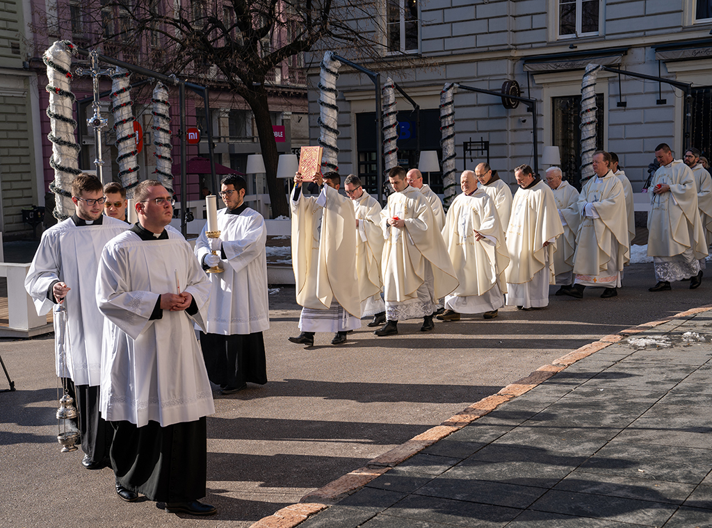 Najprije je kardinal Puljić blagoslovio svijeće te okupljenim redovnicama i redovnicima čestitao Dan posvećenog života, a potom je uslijedila procesija sa svijećama unutar crkve.
