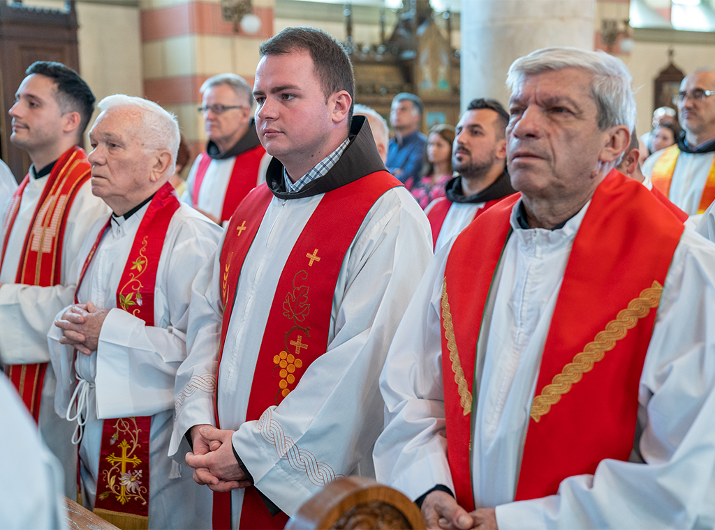 Mons. Vukšić predvodio je misno slavlje u koncelebraciji s apostolskim nuncijem u Bosni i Hercegovini mons. Francisom Assisiem Chullikattiom, provincijalom Franjevačke provincije Sv. Križa – Bosne Srebrene fra Zdravkom Dadićem, generalnim vikarom Vrhbosanske nadbiskupije mons. Slađanom Ćosićem i još oko 60 svećenika među kojima su bili poglavari i profesori s Katoličkog bogoslovnog fakulteta u Sarajevu, Franjevačke teologije, Nadbiskupijskog misijskog međunarodnog sjemeništa Redemptoris Mater te župnici župa iz kojih dolaze ređenici. Na svetoj misi sudjelovale su redovnice raznih kongregacija te roditelji, braća, sestre i rodbina ređenika, župljani iz rodnih župa ređenika i drugi vjernici. Asistenciju kod oltara i liturgijsko pjevanje animirali su bogoslovi iz spomenutih bogoslovnih sjemeništa.