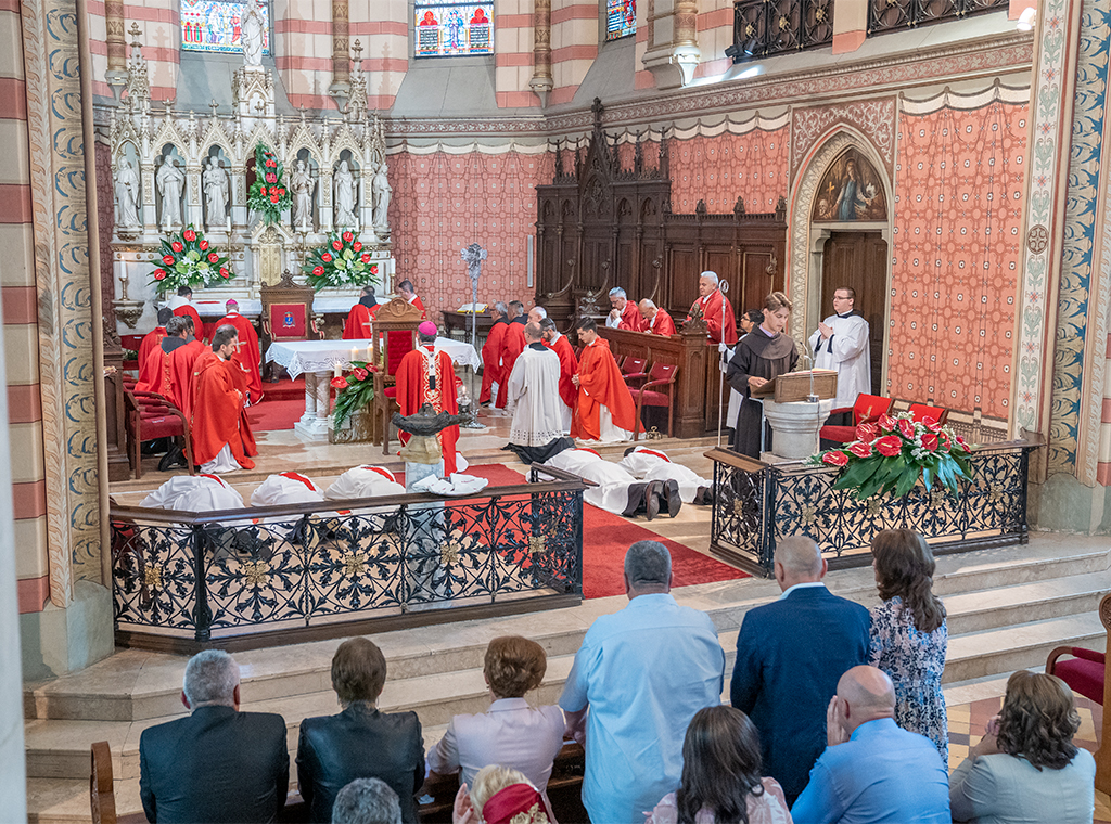 Nakon propovijedi uslijedio je obred svećeničkog ređenja tijekom kojeg su svi prisutni molili Litanije svih svetih, a vrhbosanski nadbiskup položio je ruke na glave ređenika. Nakon što su župnici rodnih župa pomogli novozaređenim svećenicima staviti štolu i obući misnicu, nadbiskup Vukšić pomazao im je dlanove svetim uljem i predao im u ruke pliticu s hostijom i kalež s vinom te sa svakim do njih izmijenio cjelov mira. Potom je nastavljeno misno slavlje.