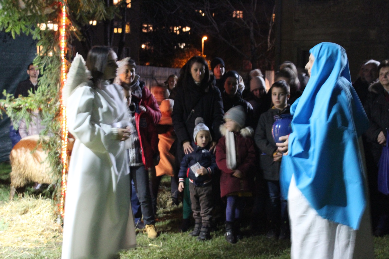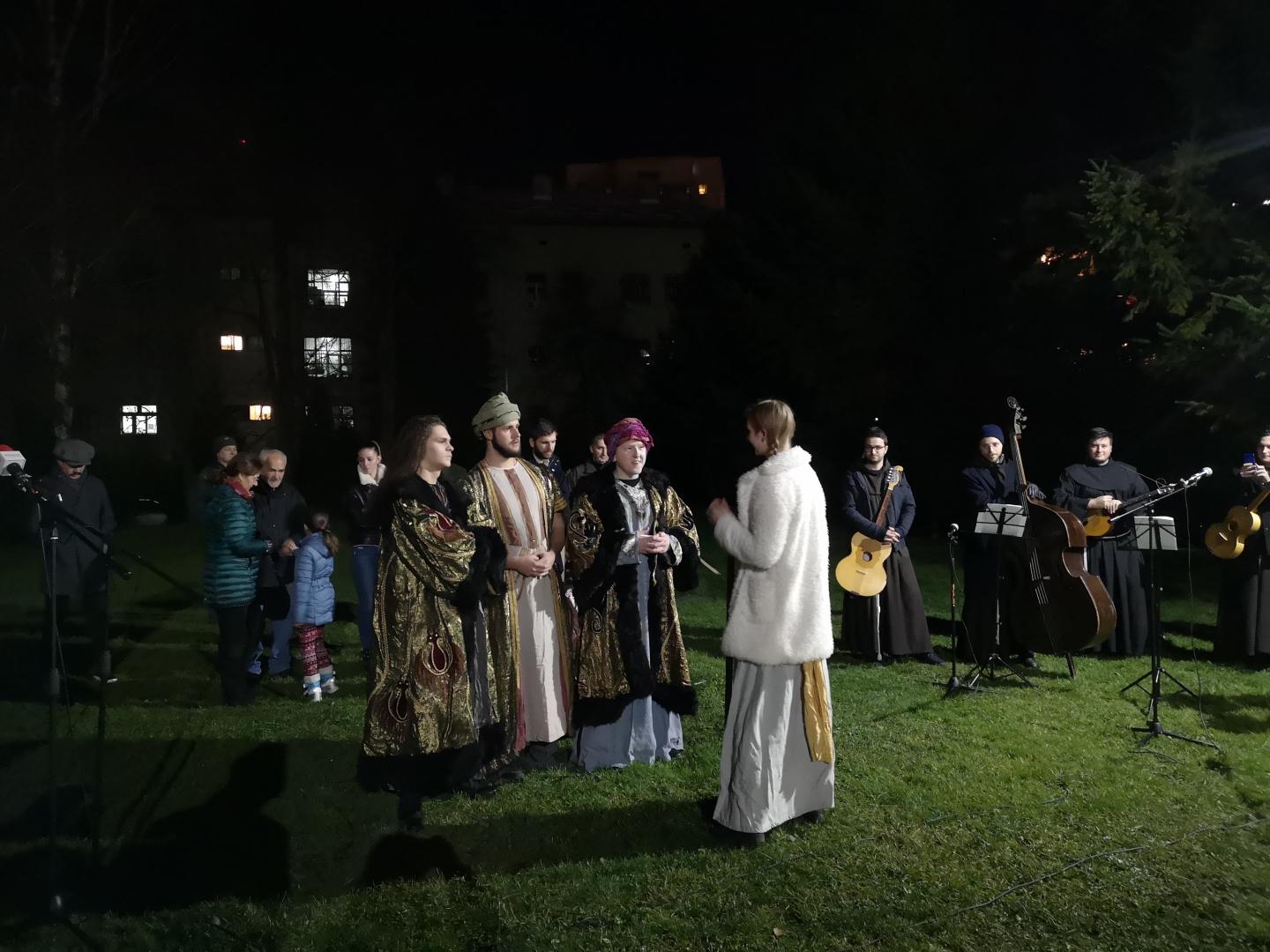 Nakon provincijalova govora uslijedio je središnji dio događaja – uprizorenje živih jaslica koje su uprizorili članovi Frame Sarajevo, a u ulozi Svete obitelji bila je obitelj Klarić – Božo (Josip), Dragana (Marija) i Iva (Isus). Inače su iz župe Brajkovići te su članovi Franjevačkog svjetovnoga reda.