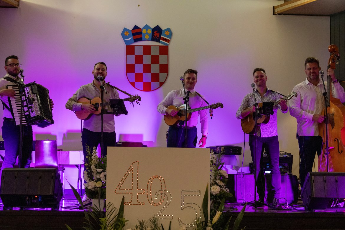 Nakon pozdravnih govora gostiju i prigodnih plesova naših folkloraša iz hrvatskih folklornih grupa „Vukovar“ i „Zagreb“, poslužena je večera. Nakon toga pogledali smo prigodni film o izgradnji crkve i centra, a na kraju svima nam se prigodnim govorom obratio fra Ivo Tadić, naš voditelj i slavljenik. Sve nas je razveseljavao tamburaški sastav „Pajdaši“ iz Sydneya, kojemu od srca zahvaljujemo.