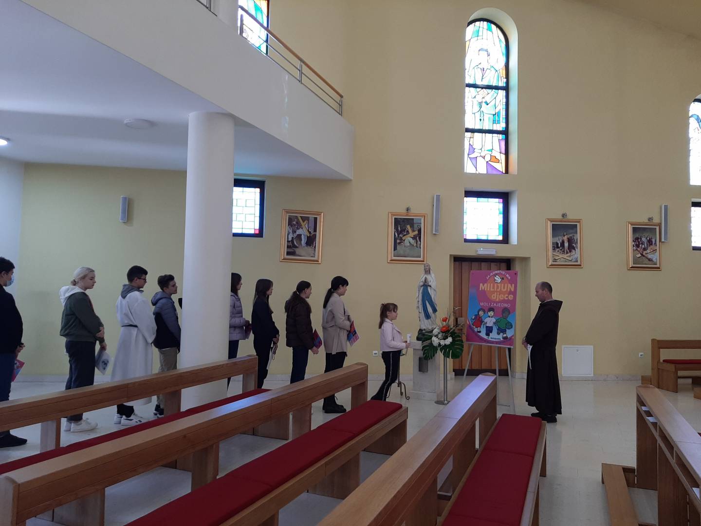 Nakon znaka križa, koristeći letke Inicijative, putem kojih su se upoznali s akcijom i njezinom nakanom, djeca nižih i viših razreda škole zdušno su molila za mir i jedinstvo pred kipom Blažene Djevice Marije. Na kraju su svi zajedno izmolili Zdravo Kraljice.